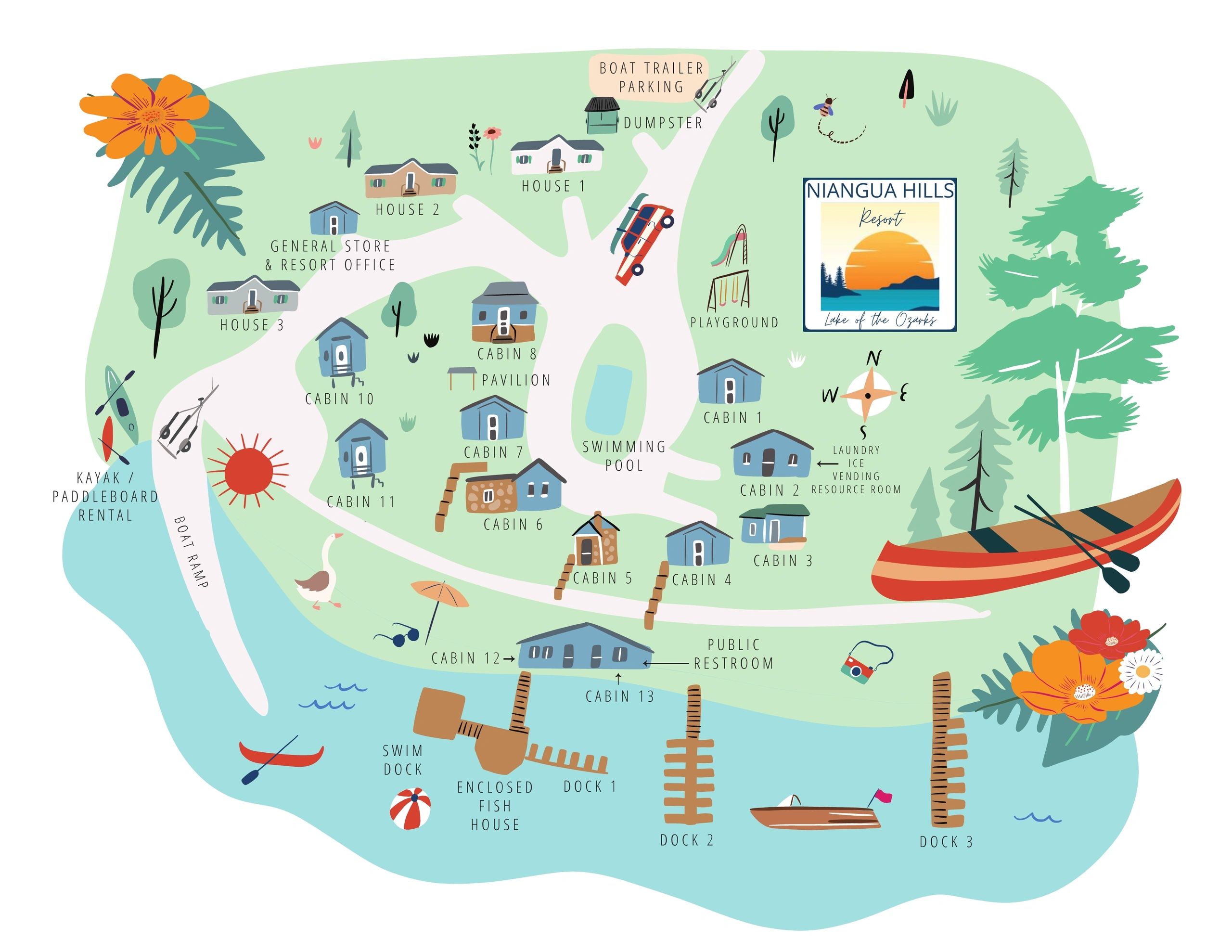 Our goal for guests staying at Niangua Hills Resort is to unplug as much as possible. But for those who need Wi-Fi, it's available throughout the property.